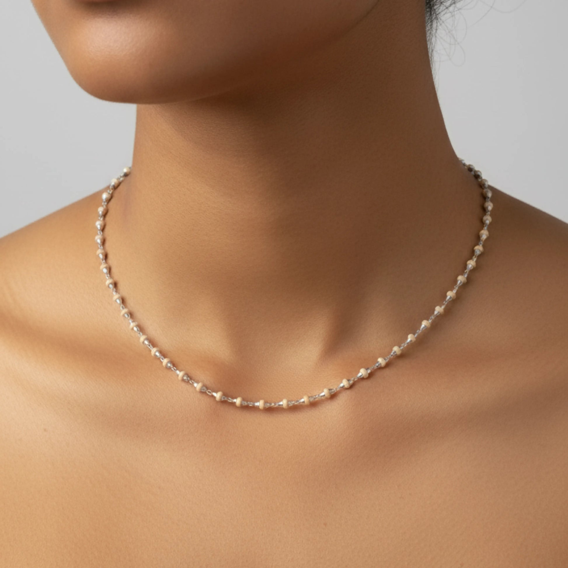 Silver is shiny, beads are consistent. Good accessory for spiritual wear.
